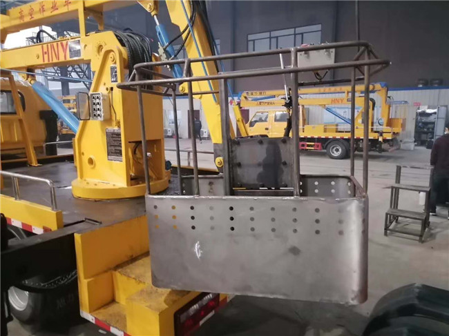 折臂高空作業車旋轉工作斗定制款,可選擇手動旋轉, 也有液壓旋轉可選。如圖: