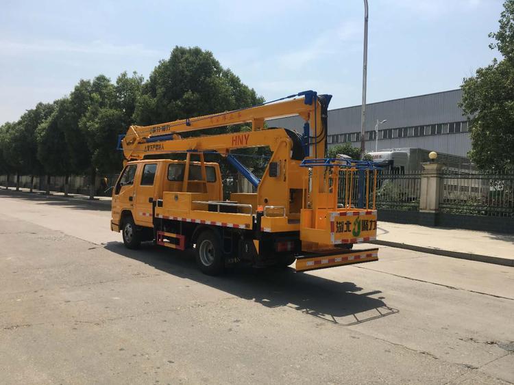 江鈴16米高空升降車底盤型號:JX1061TSG25,發動機型號JX493ZLQ5,功率85KW,(115馬力)雙排駕駛室,7.00鋼絲胎,油剎,五檔箱,前橋2噸,后橋3.5噸,帶排氣制動,原廠ABS。整車外形尺寸:7550*1980*3080